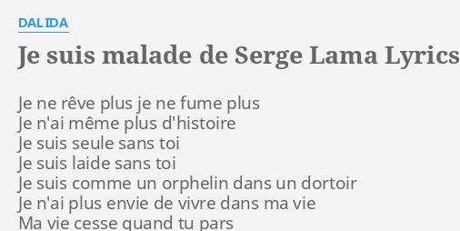 Je Suis Malade De Serge Lama Lyrics By Dalida Je Ne Reve Plus